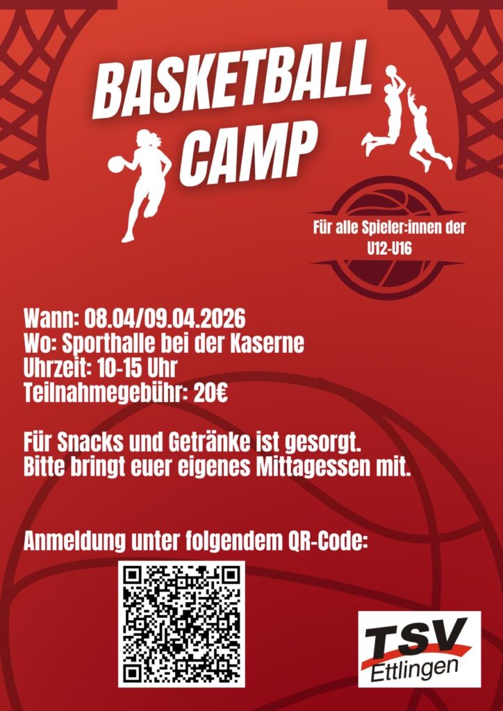 Hast du Lust auf ein Basketball-Camp und hast in den Osterferien noch nichts vor? Du spielst außerdem beim TSV Ettlingen in den Mannschaften U12 bis U16?