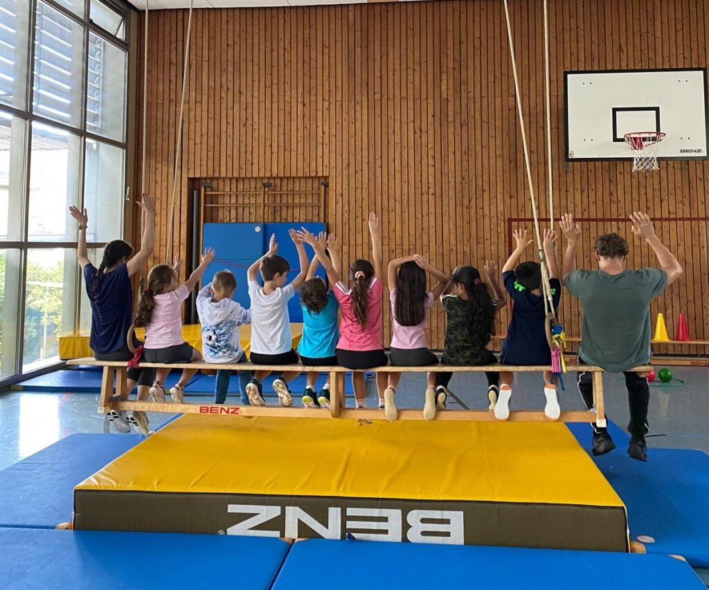 Durch ein lustiges und vielfältiges Programm haben die Kinder viel Freude am Turnen und schnell werden auch motorische Fortschritte sichtbar. Ebenso sind kunterbunte Gemeinschaftsspiele, vielseitige Parcours und für die Großen erste richtige Turnübungen Teil dieser Grundausbildung.